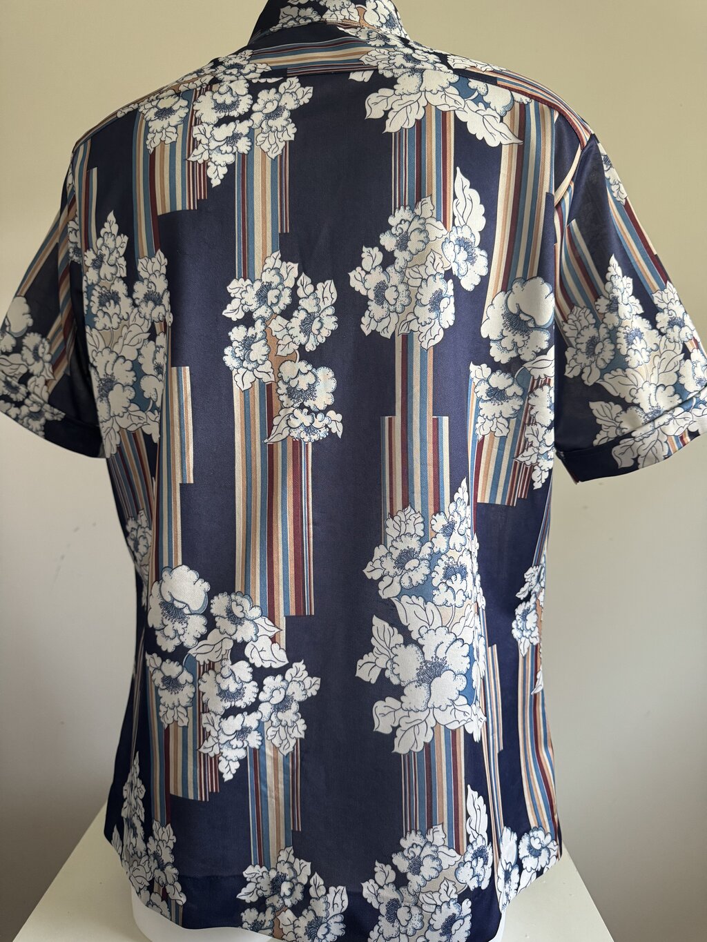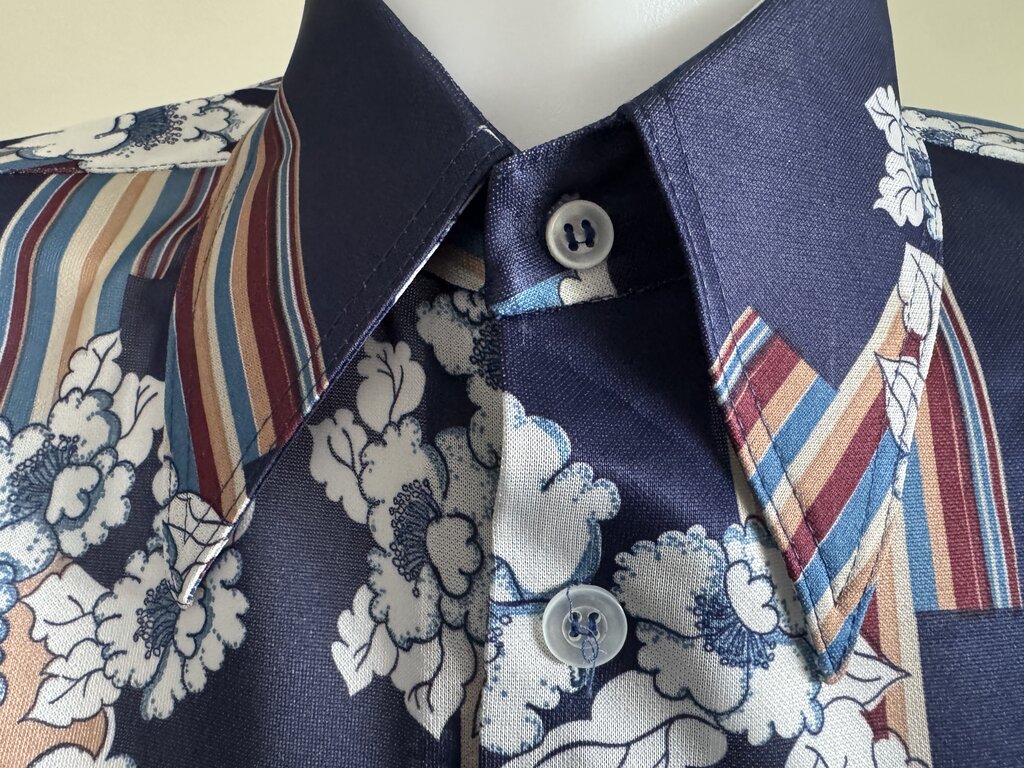 1970s Joel California Blue Floral Stripe Shirt – Made in Singapore