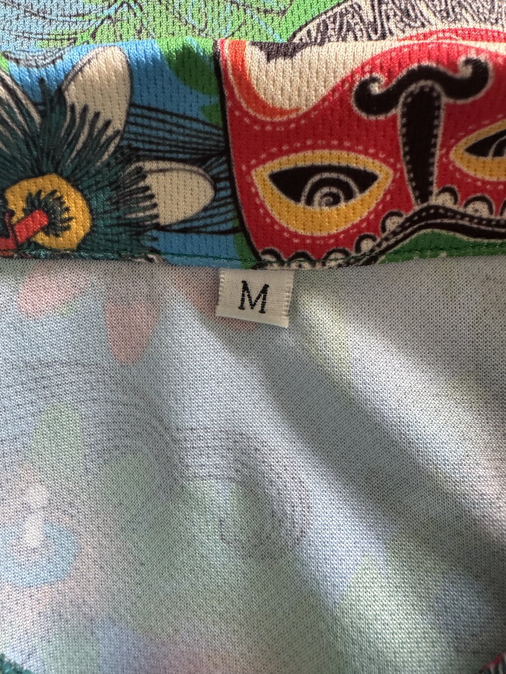 Despite having no brand label, this shirt is expertly constructed with single-needle stitching and has held up beautifully. The vivid graphics and impeccable condition make it a hard-to-find original for fans of tiki culture, vintage typography, and maximalist islandwear.