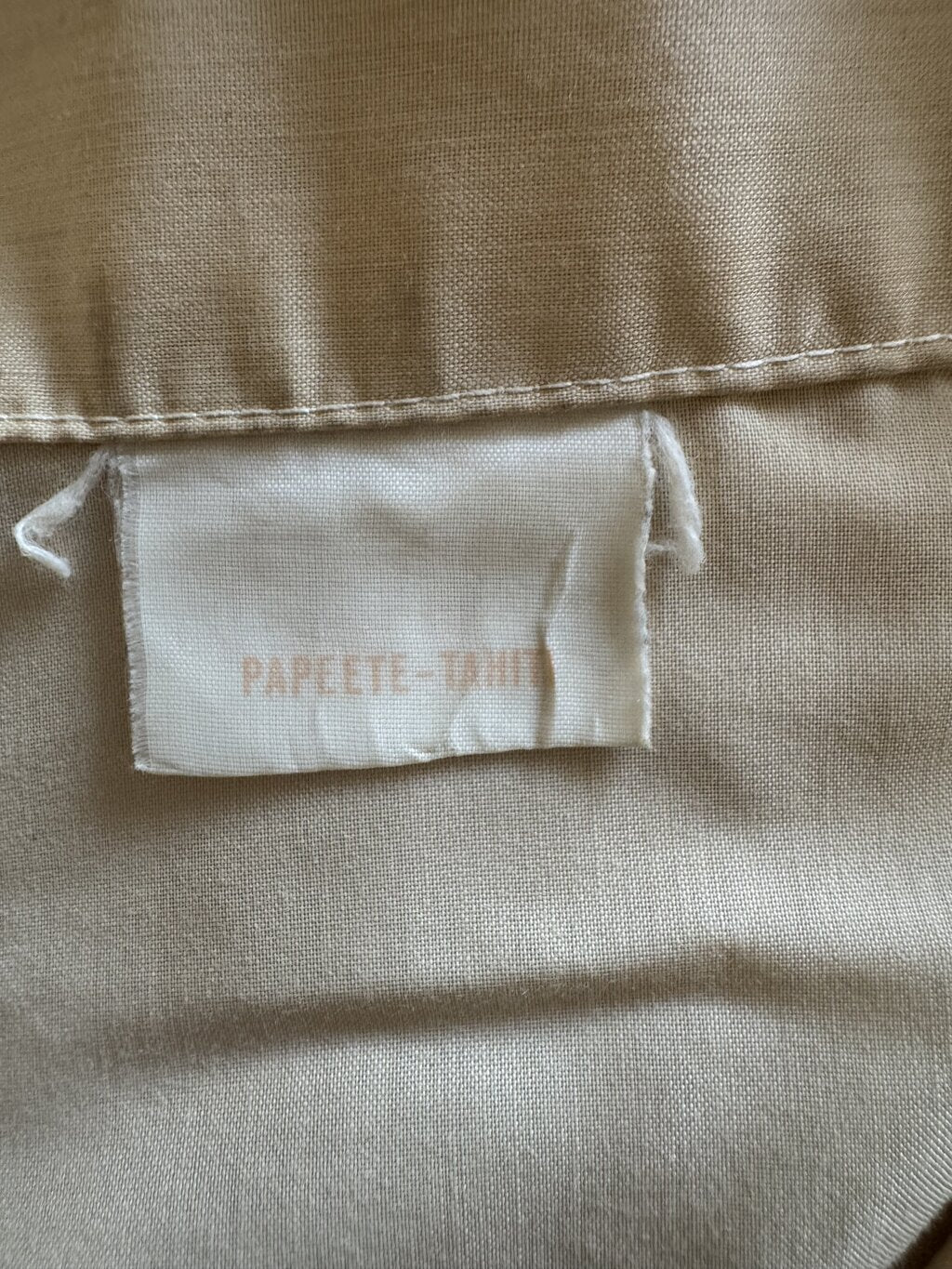 Finished with pearlescent plastic buttons and clean single-needle construction, this shirt is a seldom-seen export of French Polynesian textile design. Its silhouette and construction mark it as a product of the 1980s, a time when destinations like Tahiti marketed their own branded resort apparel to discerning travelers.