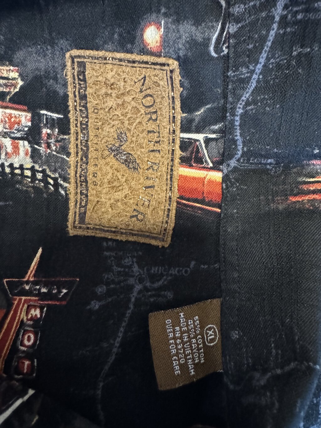 1990s North River Route 66 Shirt – Classic Cars & Neon Motel Lights (XL)