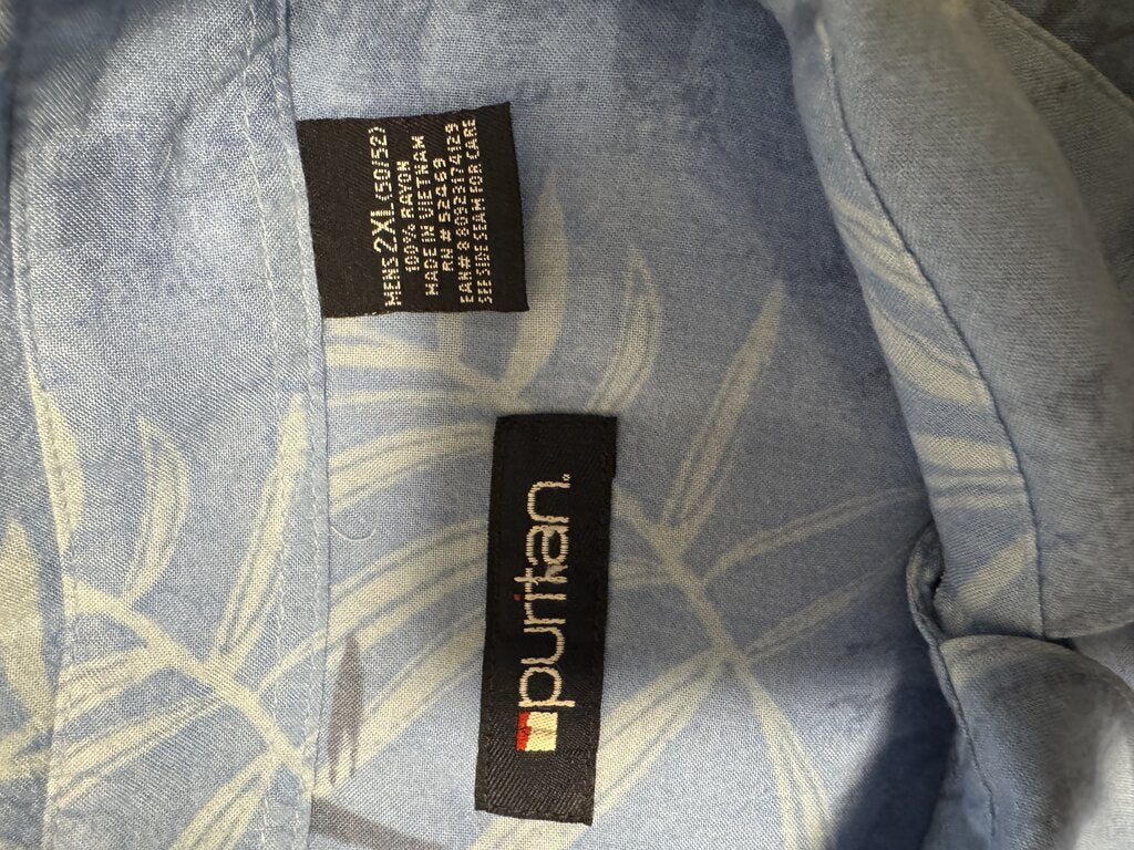 2000s Puritan Palm Leaf & Bamboo Shadow Print Shirt – Light Blue (2XL)
