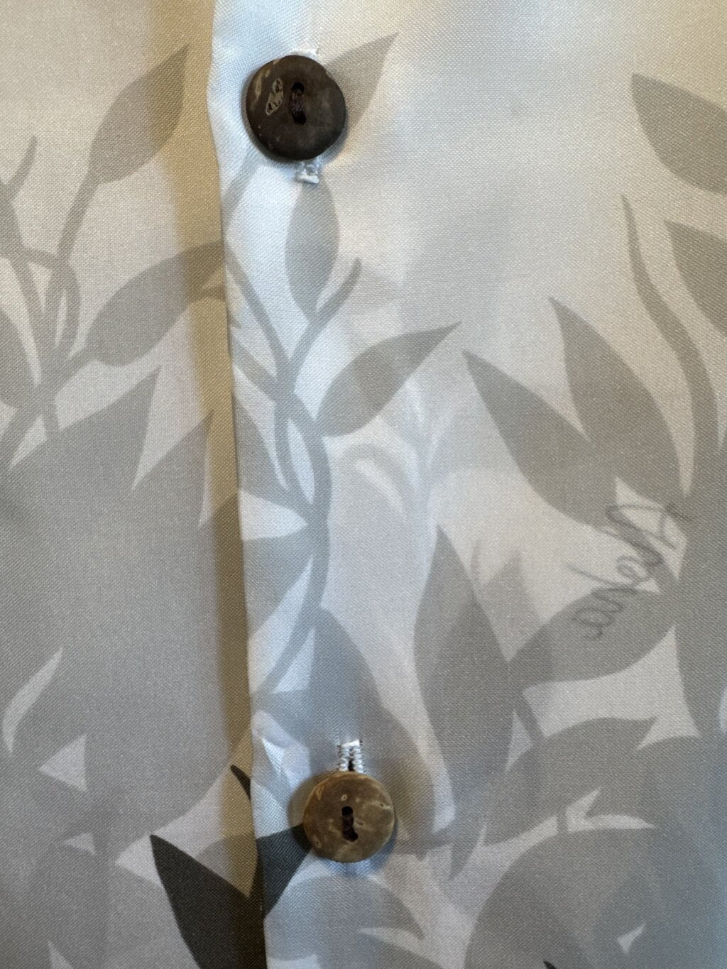 Crafted from silky polyester with a smooth, flowing drape, this USA-made piece features a jet-black camp collar, coconut shell buttons, and a sleek welt chest pocket—an uncommon detail among contemporary aloha shirts. The shirt is cut generously in a true 3XL with extended body width and shoulder breadth, offering comfort without sacrificing visual impact.