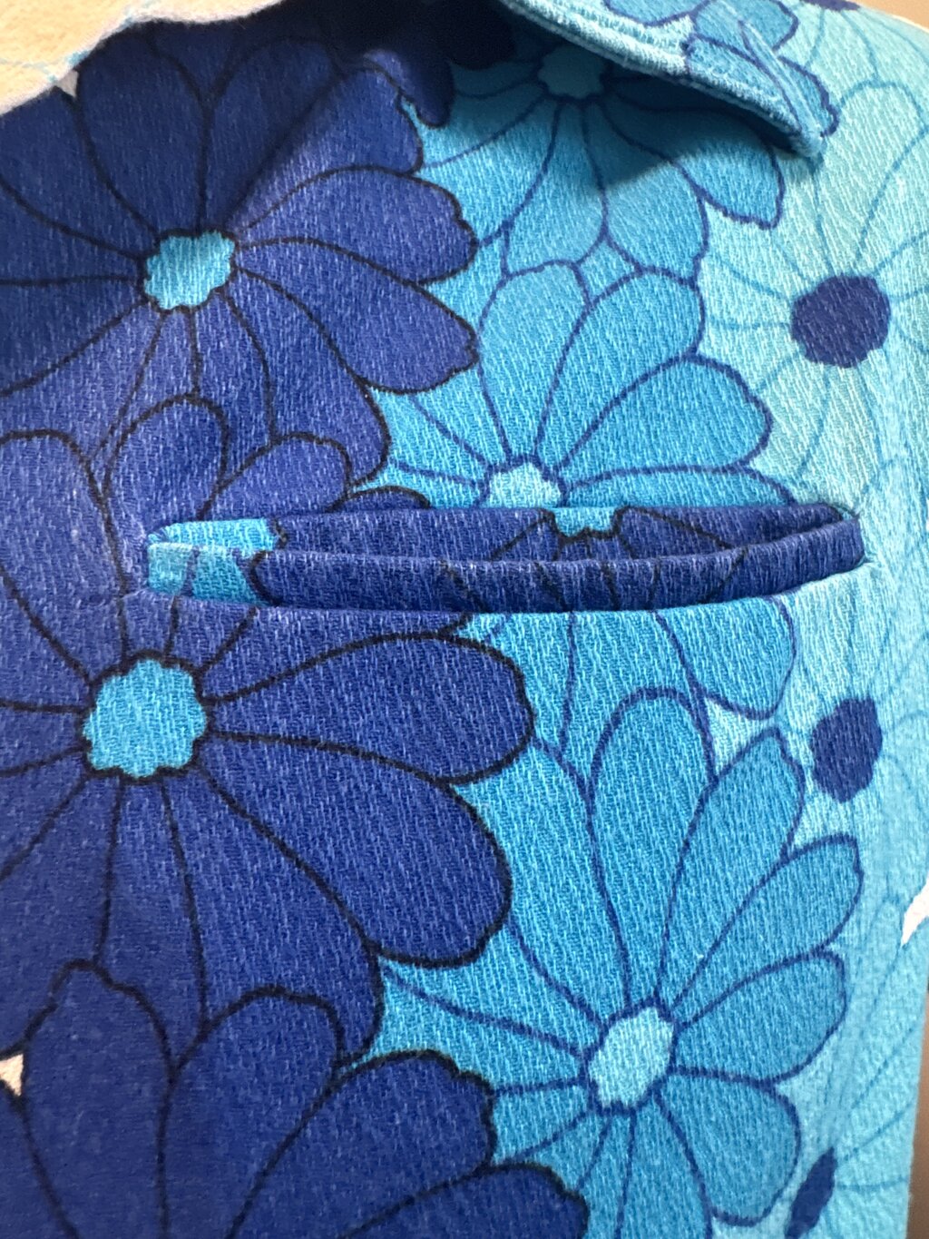 Late 60s / Early 70s Mod Floral Shirt – Sky & Cobalt Daisy Stripe on Barkcloth (M)